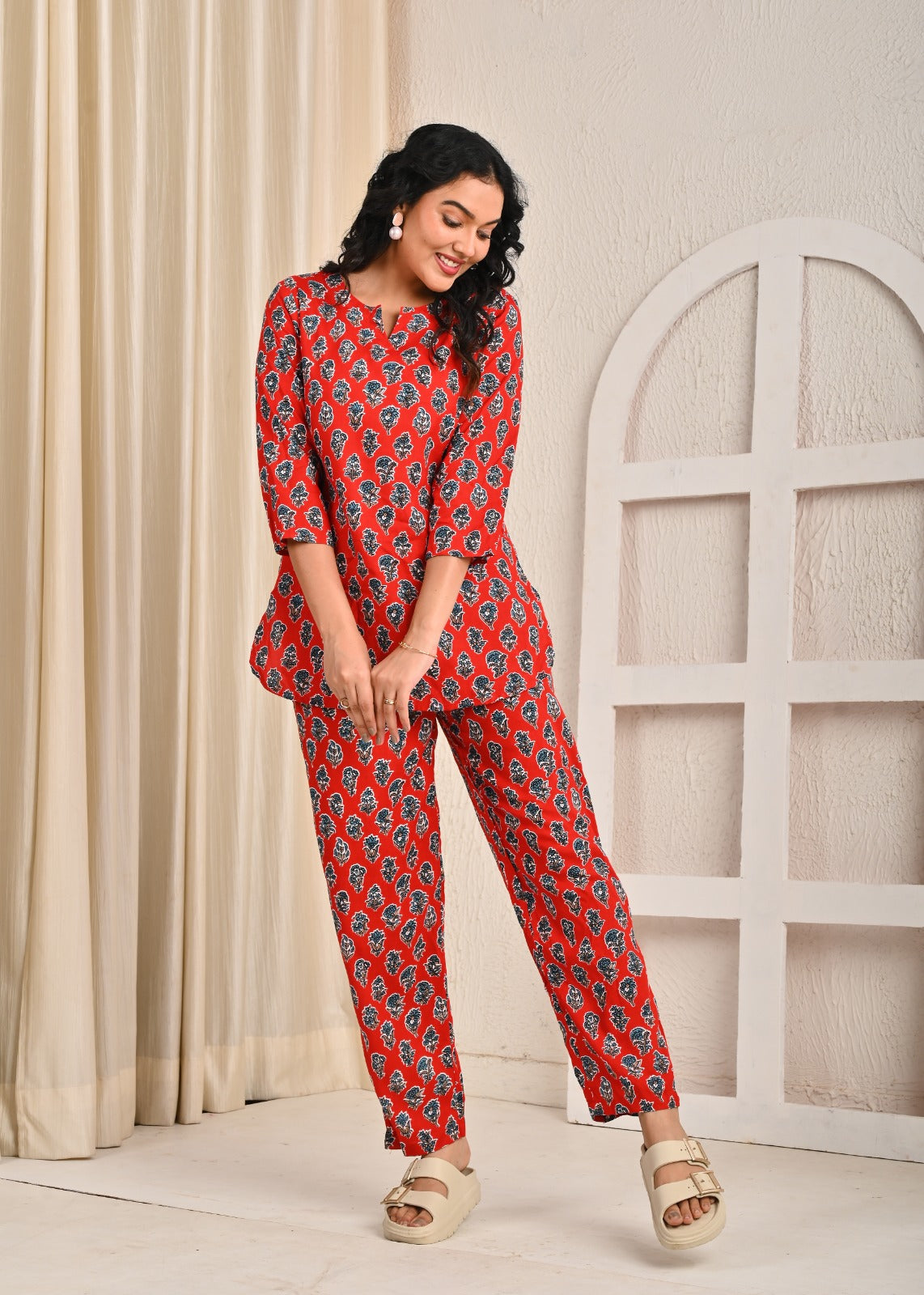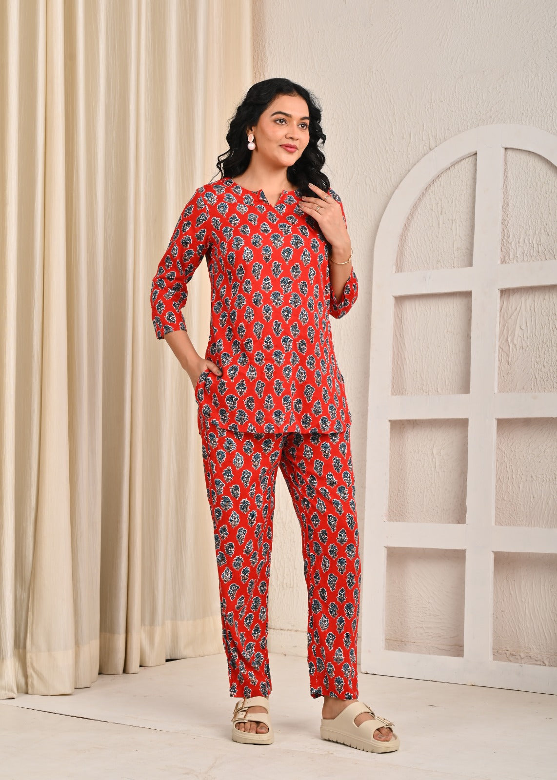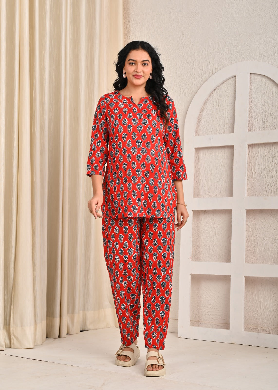 printed cotton night suit for women, cotton nightwear set, women loungewear set, floral printed night suit, comfortable night suit, breathable cotton nightwear, home wear night suit, pajama set for women